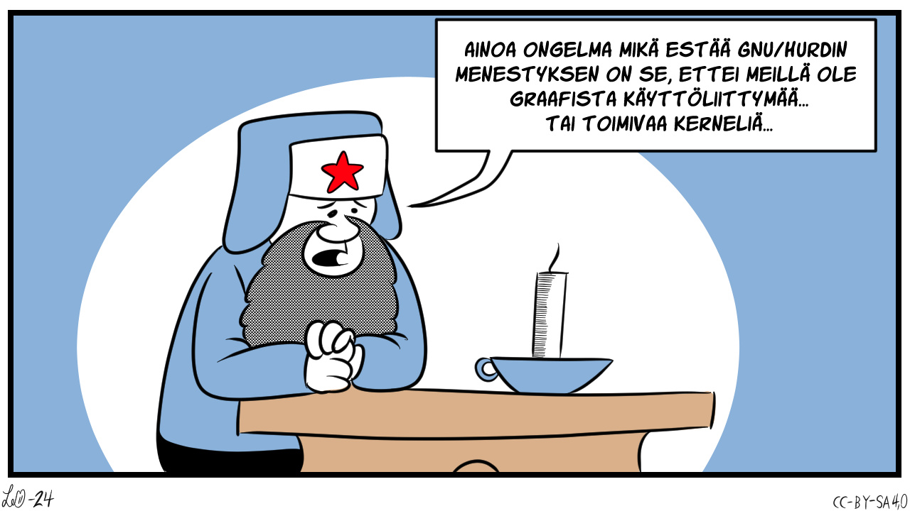 Vitsin takaaNyt kun luen vitsin uudestaan, koen että "tai valmista kerneliä" olisi ollut hieman parempi viimeinen repliikki.